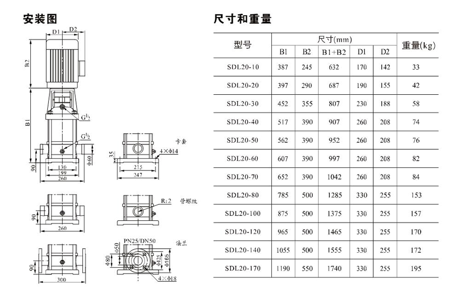 南元SDL20/SDLT20立式多級離心泵有不同的泵規(guī)格和不同級數(shù),以滿足所需的流量和壓力。